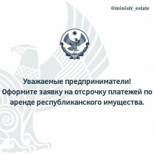 На официальном сайте Минимущества Дагестана и на портале «Недвижимость для бизнеса» появилась возможность для подачи заявления на отсрочку платежей по аренде республиканского имущества, которой могут воспользоваться предприниматели.