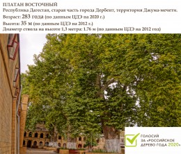 Спешим обрадовать всех дагестанцев с тем, что платан, растущий во дворе Джума-мечети г. Дербент включен в список деревьев - участников конкурса.