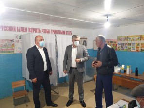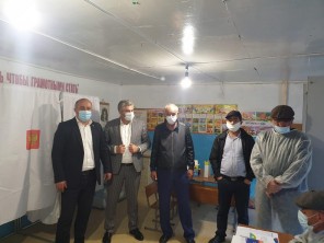 Раджаб Раджабов и Хабиб Джанаев в сопровождении председателя ТИК Рамазана Мухтарова побывали на избирательных участках Укальском №1436 и Тляратинском №1434.