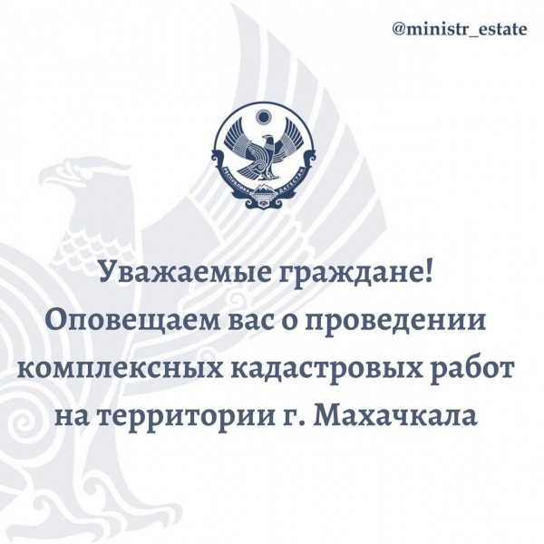 С 31.07.2020 года в отношении объектов недвижимости на территории г. Махачкала проводятся комплексные кадастровые работы., а именно в поселках. Семендер, Шамхал, Ленинкент, а также в селах Шамхал-Термен и Богатыревка.
