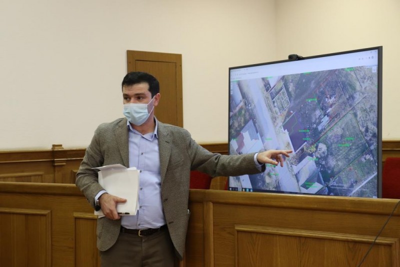 Хизри Хизриев презентовал на заседании карта-планы территорий, ортофотоснимки земельных участков по населённым пунктам – Шамхал-Термен, Богатыревка, Семендер, Ленинкент, Шамхал.