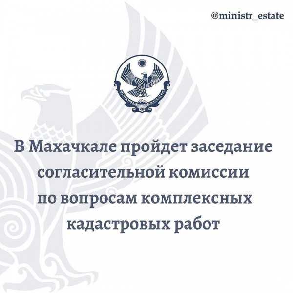 Министерство по земельным и имущественным отношениям Республики Дагестан извещает о проведении заседания согласительной комиссии по вопросу согласования местоположения границ земельных участков при выполнении комплексных кадастровых работ на территории МО «город Махачкала» в поселках: Шамхал-Термен, Богатыревка, Семендер, Ленинкент, Шамхал.