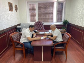 Статс-секретарь, заместитель министра по земельным и имущественным отношениям РД Эмиль Татаев провел рабочую встречу с заместителем министра спорта РД Будуном Будуновым.