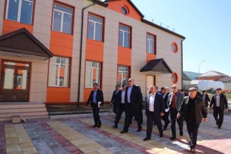 Первым пунктом посещения делегации стала строящаяся школа на 420 ученических мест в селе Ленинаул. Объект строится в рамках Республиканской инвестиционной программы, ввод в эксплуатацию намечен на 2022 год.