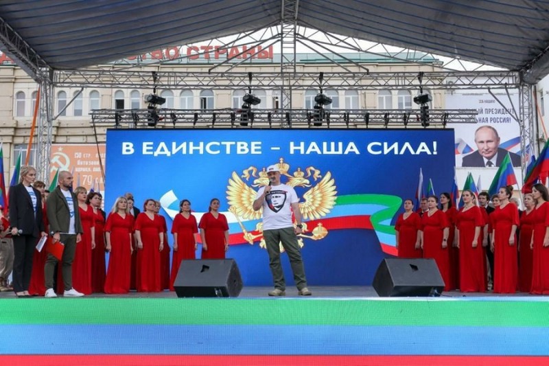 Коллектив Министерства по земельным и имущественным отношениям Республики Дагестан и ГБУ РД "Дагтехкадастр" приняли участие в концерте – акции «В единстве – наша сила!» в поддержку курса Президента России Владимира Путина.