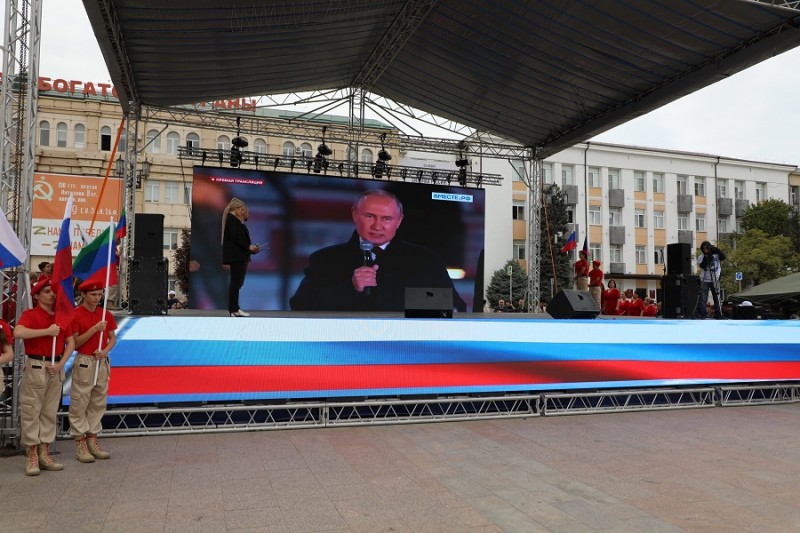 Более 30 тысяч дагестанцев – представители общественности, органов власти, молодежных и добровольческих организаций, известные деятели культуры, науки и спорта, студенты и педагоги – приветствовали политику главы государства и вхождение в состав России новых регионов.