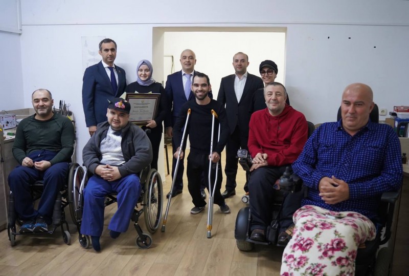 «От всего нашего коллектива и от себя лично выражаю благодарность руководителю проекта за вклад в создание условий для повышения уровня социализации для инвалидов-колясочников и людей с ограниченными возможностями здоровья», - подчеркнул Заур Эминович, вручив Наиде Магомедовой Благодарность от Министерства по земельным и имущественным отношениям Республики Дагестан.