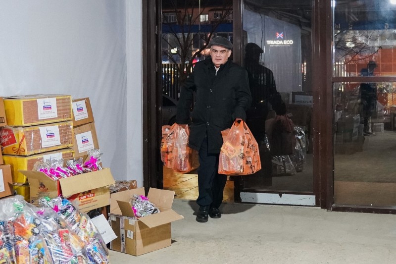 Подарочные наборы были переданы в Республиканский пункт формирования и отправки новогодних подарков семьям с детьми военнослужащих и участникам специальной военной операции.