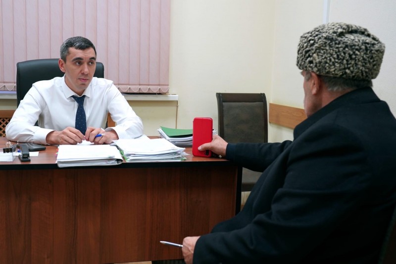Начальник управления земельных отношений Алефтин Абдуллаев встретился с представителем КФХ Муртазали Муртазалиевым, который обратился в Минимущество Дагестана с просьбой о предоставлении земельного участка площадью 200 га в Хасавюртовском районе.