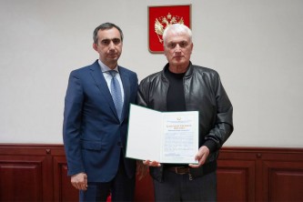 Награду от ведомства вручил Заур Эминов, поблагодарив родителей за воспитание сына, который сейчас, в числе добровольцев, проходит воинскую службу на зоне СВО.