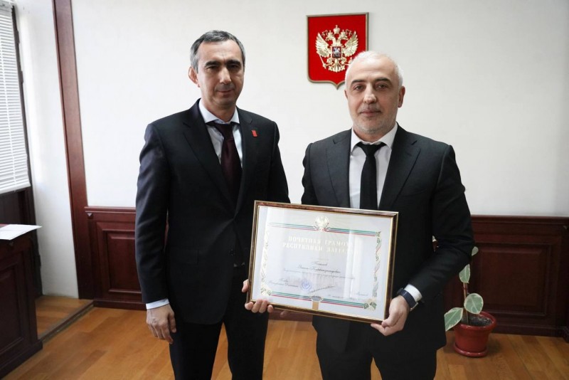 Почетную грамоту Республики Дагестан из рук вице-премьера – министра по земельным и имущественным отношениям получил статс-секретарь – заместитель министра Эмиль Татаев.
