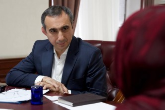 В Минимуществе состоялась встреча вице-премьера – министра Заура Эминова с руководителем нового этнокультурного комплекса «Мугинское подворье» Муслимат Магомедовой.