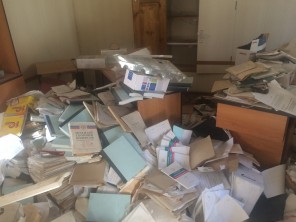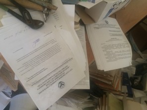 Мероприятия проводились в здании по адресу: ул. Пушкина, 6, где, согласно вывеске, располагается государственное казенное учреждение республики «Агентство энергосбережения». Работы по инвентаризации проводились в нескольких кабинетах. В одном из них, была найдена архивная документация бывшего Российского фонда имущества. Войдя в помещение, представители министерства увидели пыльный заброшенный кабинет, на полу в беспорядочном состоянии находились стопки документов, сваленных в общую кучу.