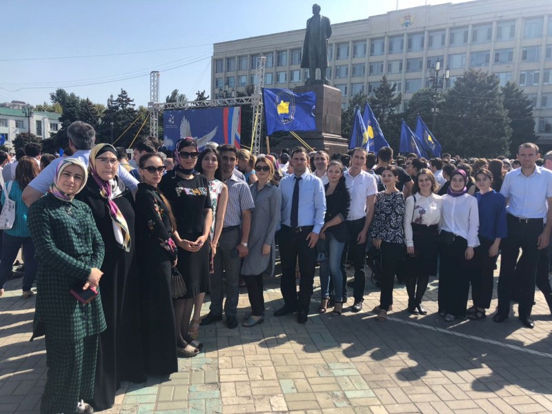 На центральной площади Махачкалы собрались представители органов власти, студенты учебных заведений, активисты общественных, религиозных и молодежных организаций, региональных отделений политических партий, чтобы отдать дань уважения жертвам терактов и людям, пожертвовавшим своими жизнями во благо Родины и народа. Здесь же участники акции выстроились «живой» фразой «НЕТ ТЕРРОРУ». После минуты молчания в память о жертвах террористических актов в различных городах России участники мероприятия запустили в небо белые воздушные шары.