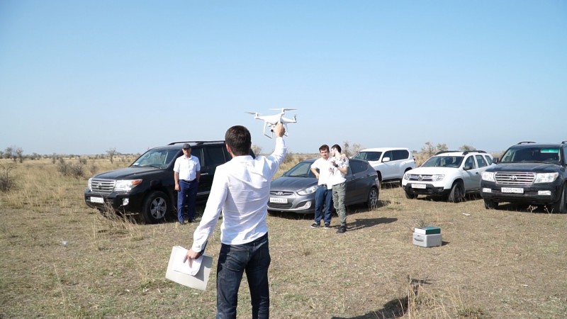 Сразу по окончании совещания его участники выехали на участок недалеко от села Зеленоморск, чтобы своими глазами понаблюдать за процедурой инвентаризации земель с помощью квадрокоптера. Этой работой руководил директор Института экологии и устойчивого развития ДГУ Алимурад Гаджиев.