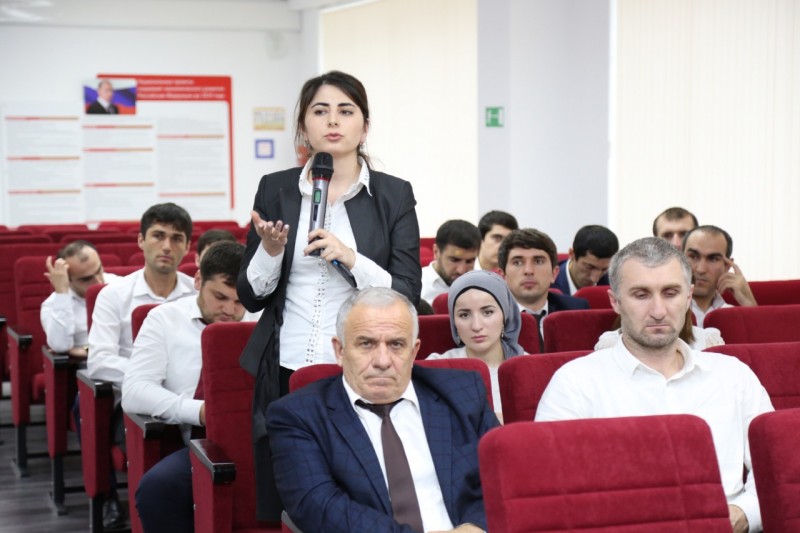 Министр экономики и территориального развития Республики Дагестан Осман Хасбулатов, первый заместитель министерства по земельным и имущественным отношениям Республики Дагестан Агарагим Кагиргаджиев, заместитель министра по земельным и имущественным отношениям Республики Дагестан Хабиб Джанаев и директор ГАУ РД «МФЦ в РД» Магомедэмин Арсланалиев ответили на вопросы присутствующих и дали ряд рекомендаций.