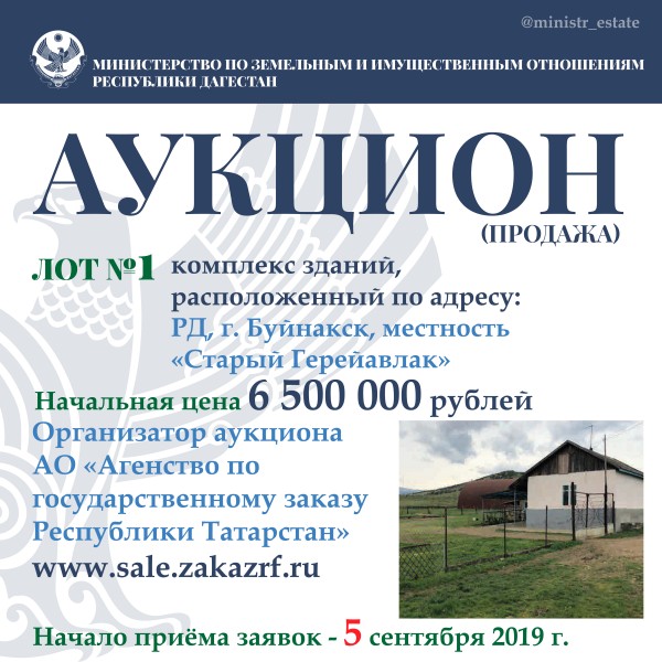 Министерство по земельным и имущественным отношениям Республики Дагестан объявляет о проведении аукциона по продаже республиканского недвижимого имущества в составе: