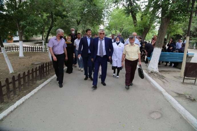 Далее делегация с выездом на место осмотрела ряд городских объектов. Первым пунктом посещения стала центральная городская больница Кизилюрта, которая также обслуживает жителей Кизилюртовского района и зоны отгонного животноводства.