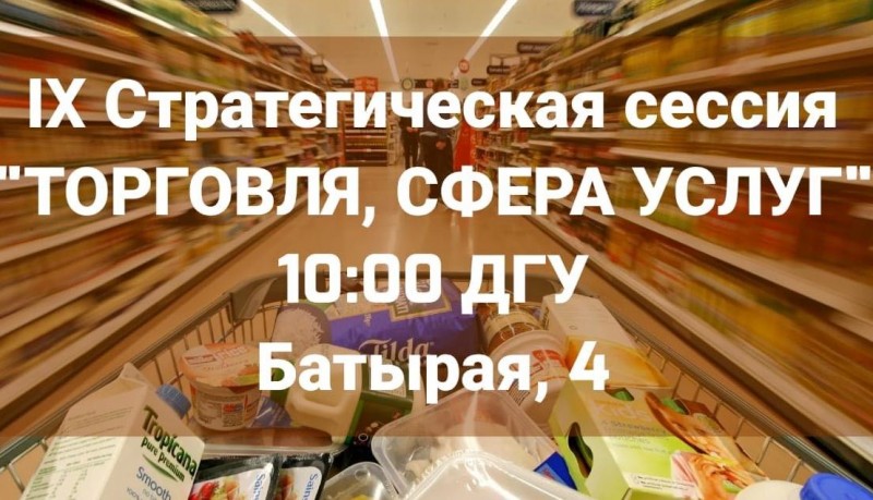 18 августа в 10:00 на базе Экономического факультета Дагестанского государственного университета (г. Махачкала, ул. Батырая, 4) состоится Стратегическая сессия на тему «Торговля, сфера услуг».